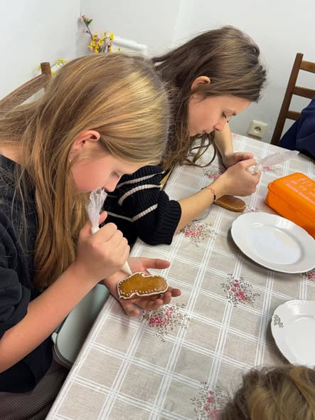 26. 11. 2025 se celá naše školička vydala zdobit perníčky do místní Galerie Kraslic. Vždy se jedná o parádní spolupráci s místními ženami z Galerie.