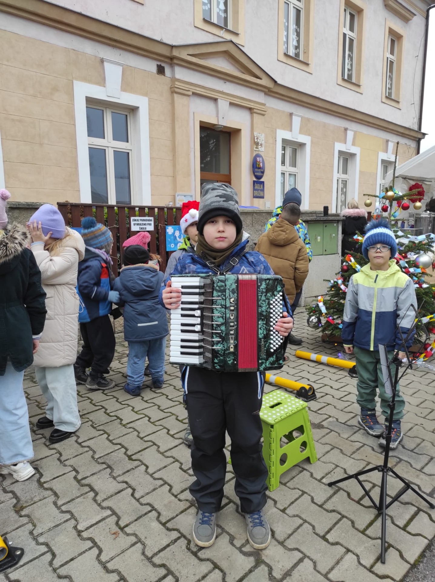 Kvůli chřipkové epidemii jsme museli bohužel zrušit plánovanou vánoční besídku s jarmarkem. Alespoň jsme uspořádali dne 17. 12. 2025 vánoční jarmark, kde se prodávalo, zpívalo, hrálo na akordeon a trošku hodovalo🙂